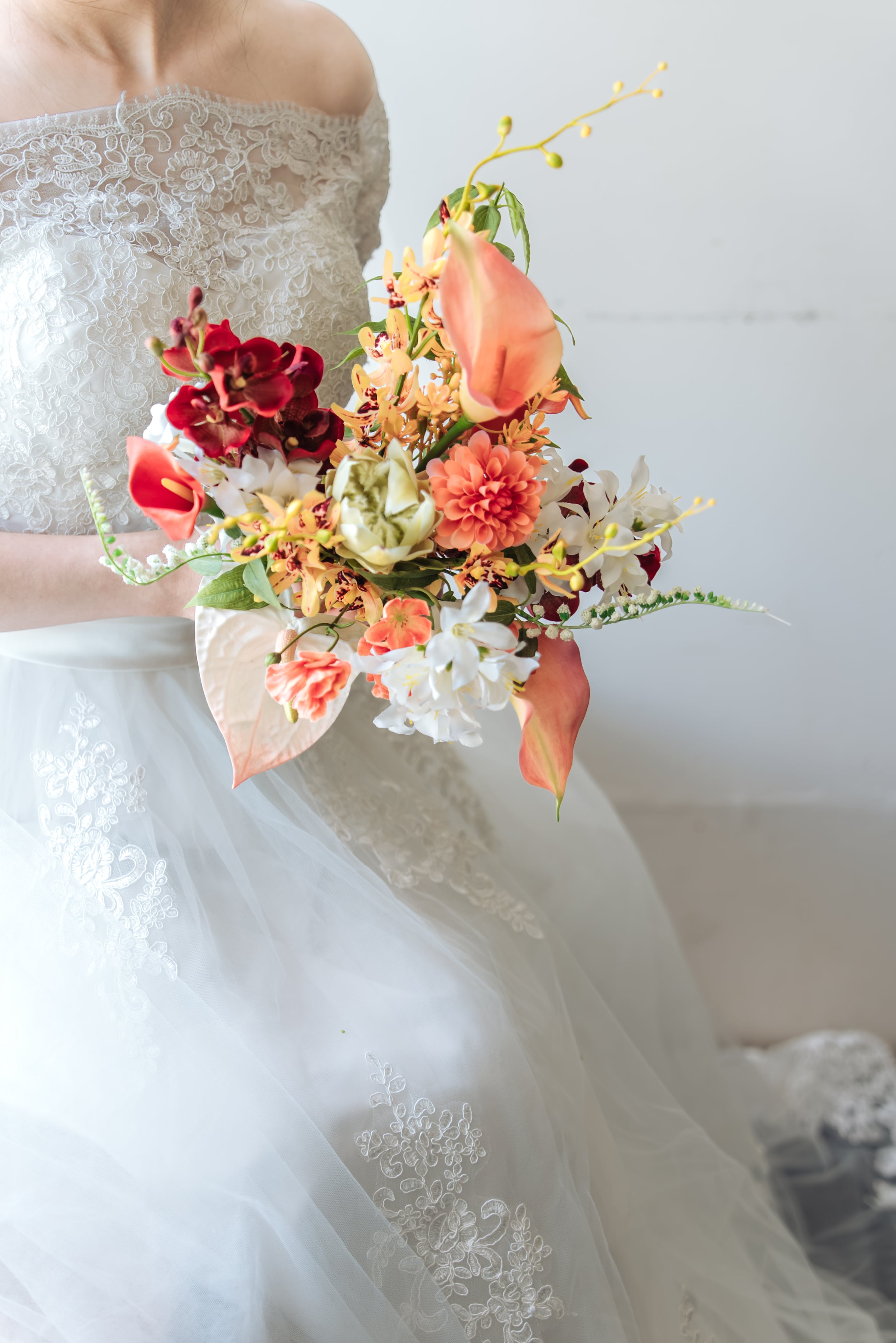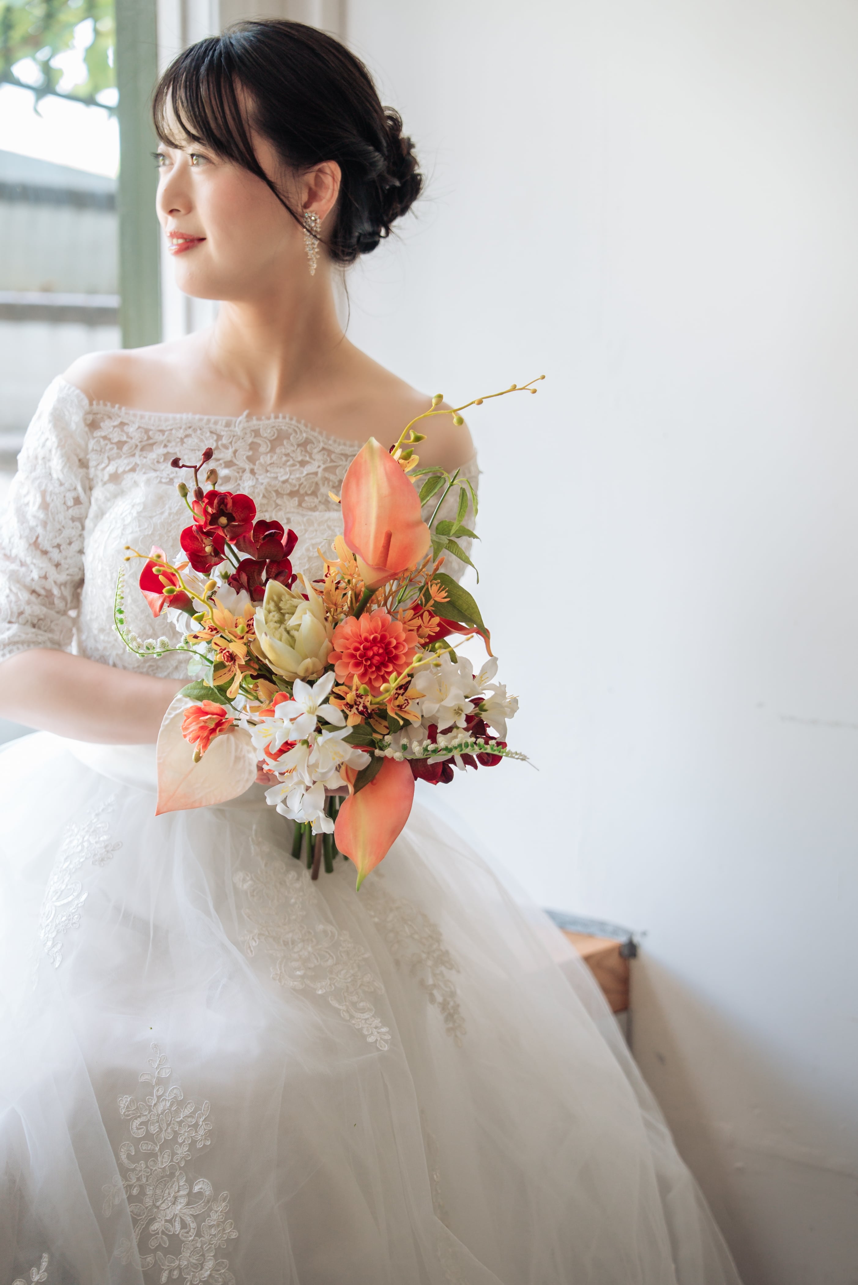リアルな質感が際立つアーティフィシャルフラワーは、まるで生花のような美しさを持ちつつ、長持ちするのが特長です。リゾート婚や海外ウェディングはもちろん、披露宴やフォトウェディングでも華やかさを添えます。また、 ご使用後はご自宅のインテリアとしてもお楽しみいただけます。