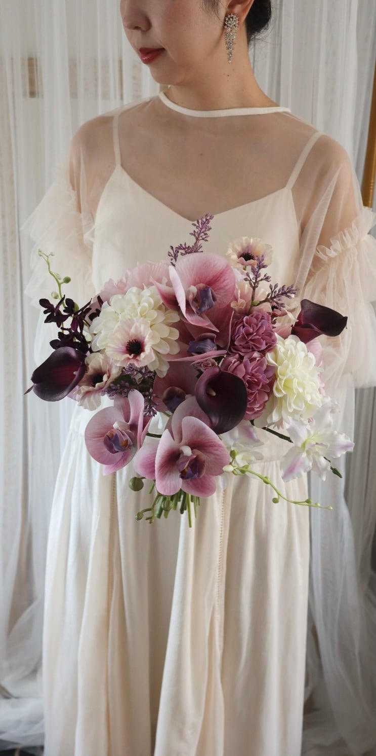 高品質のアーティフィシャルフラワーを使用した、華やかなクラッチブーケをご用意いたしました✨
