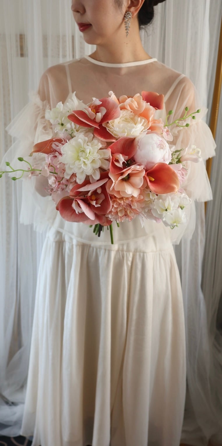 高品質のアーティフィシャルフラワーを使用した、華やかなクラッチブーケをご用意いたしました✨